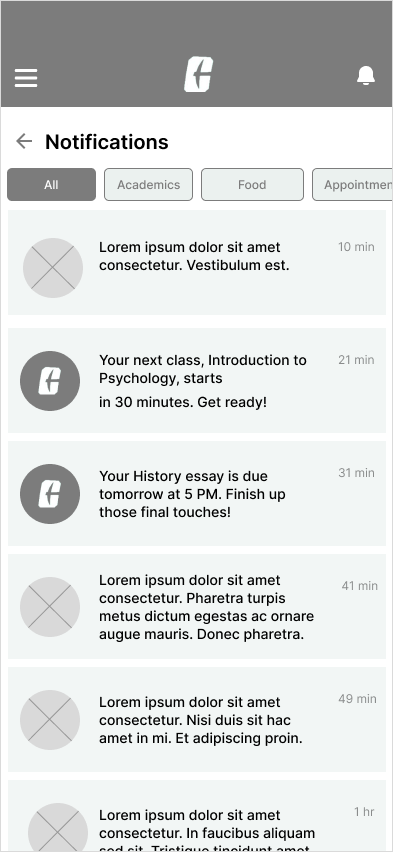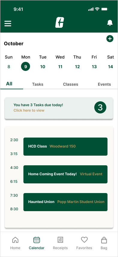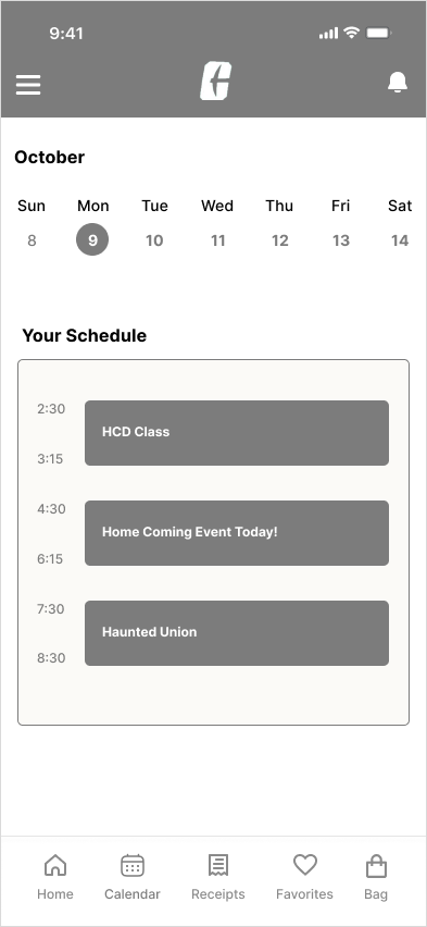 Created a personalized calendar for the users where they can receive all the daily updates about the university and their schedule in one place, also grouping similar tasks to improve information organization