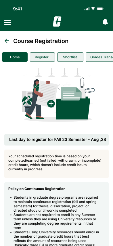 Included key information on the Home tab to ensure that users do not miss deadlines