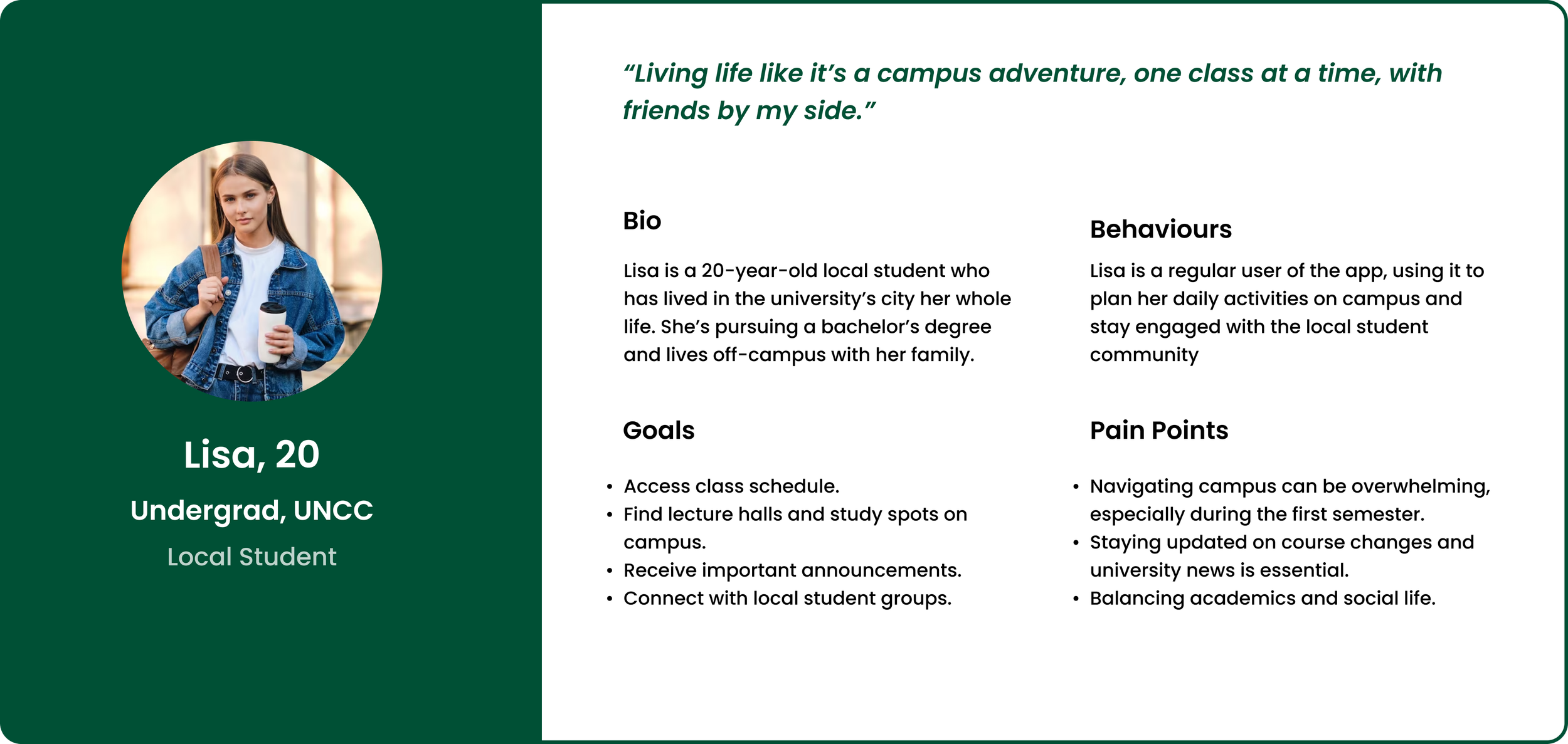 UNC Charlotte, a sprawling 1000-acre campus, boasts a rich diversity with students hailing from approximately 100 different nations. Each year, a significant number of non-local students enroll, encountering challenges in navigating and staying informed about campus happenings. Common grievances include missing events and struggling with internal transportation.