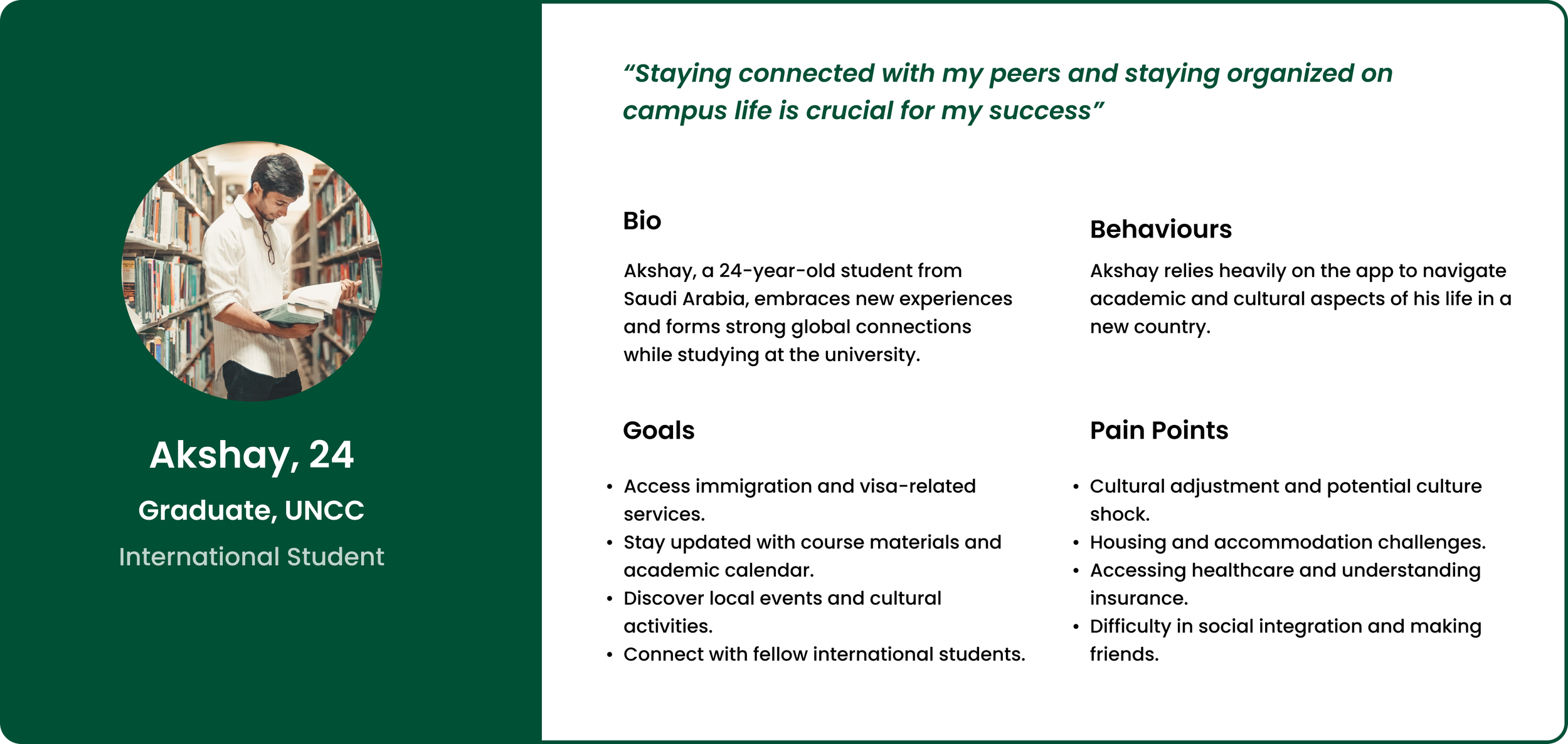 To better understand the users and their Challenges at UNC Charlotte. To learn about their difficulties due to cultural differences