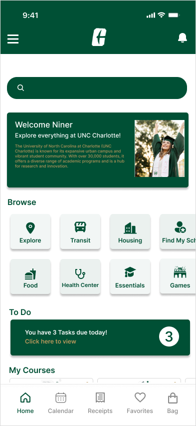 By giving visitors to UNCC access to an app that acts as a one-stop for all things UNCC-related, we hope to make things simpler for everyone who visits.