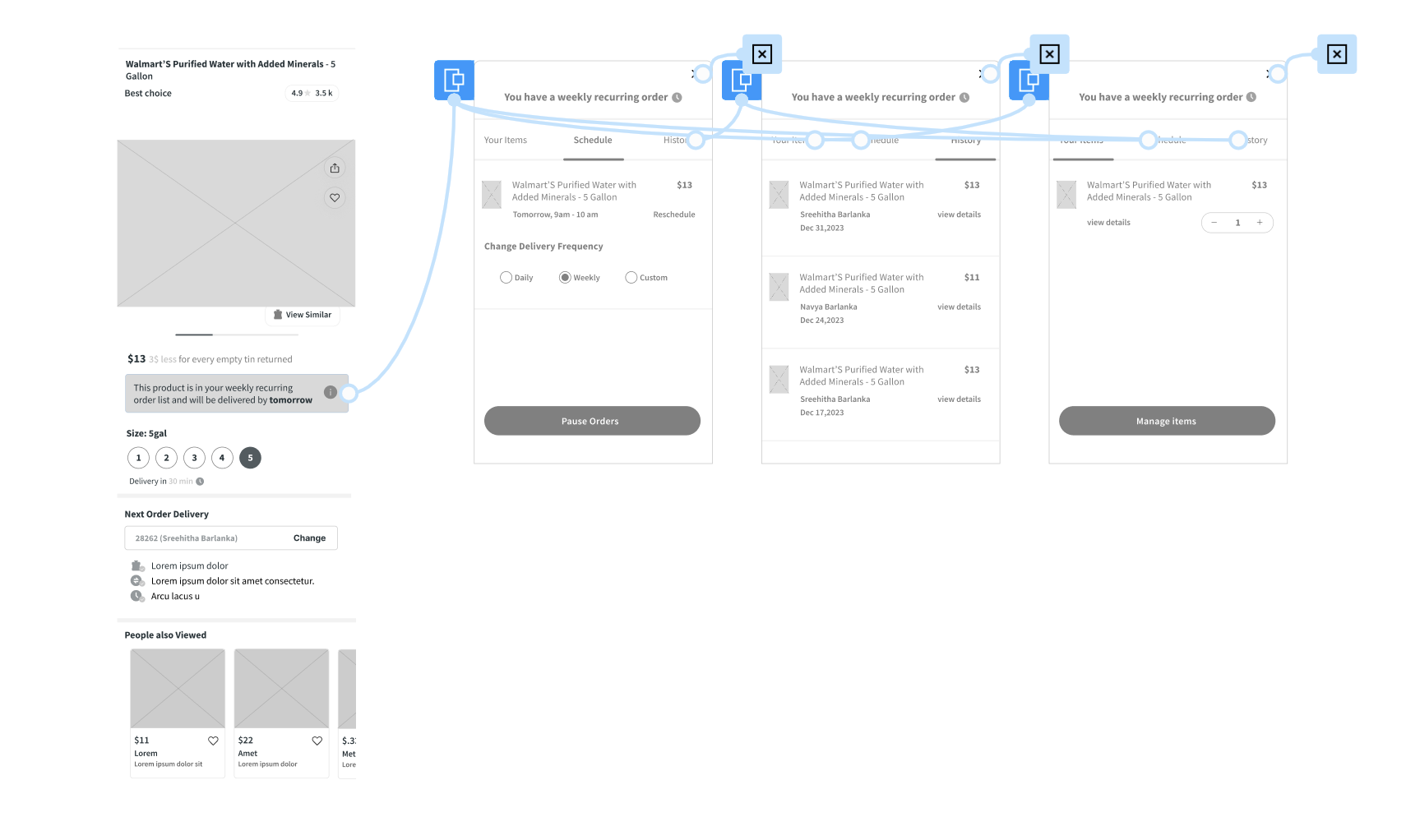 Since my focus in the current designs was solely on the user flow of recurring water delivery, I now also plan to enhance the appearance of the overlay for multiple recurring orders.